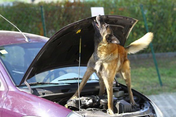 Hund durchsucht das Fahrzeug
