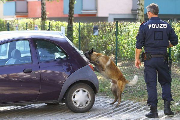 Hund durchsucht das Fahrzeug