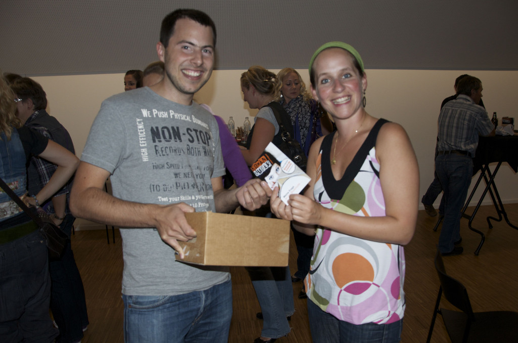 eine Fragekarte wird an Patrizia verteilt