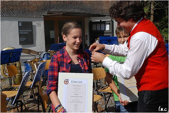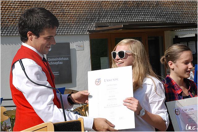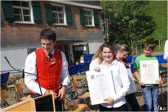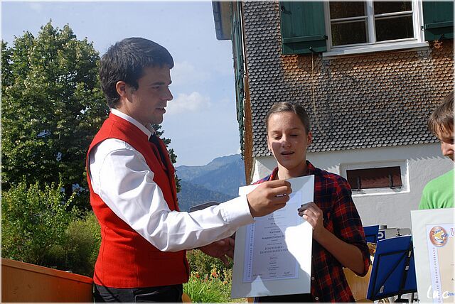 Auf dem Dorfplatz in Schnepfau mit dem MV Schnepfau.