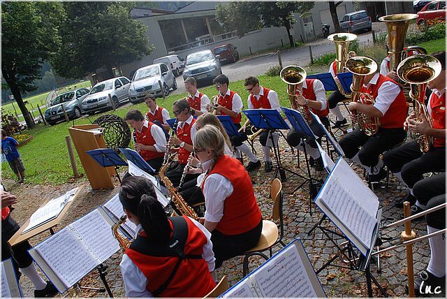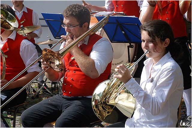 Auf dem Dorfplatz in Schnepfau mit dem MV Schnepfau.
