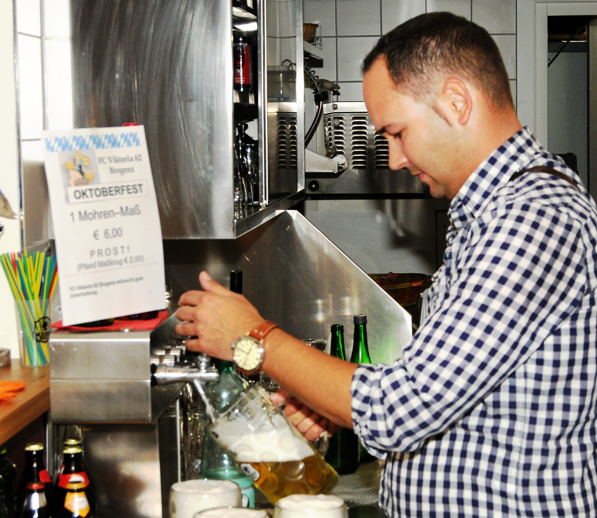 Christian füllt eine Maß nach der anderen
