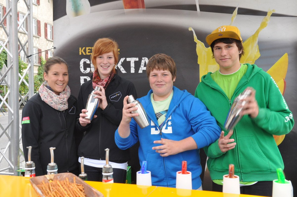 Alkoholfreie Drinks shakten Theresia, Julia, Patrick und Philip.