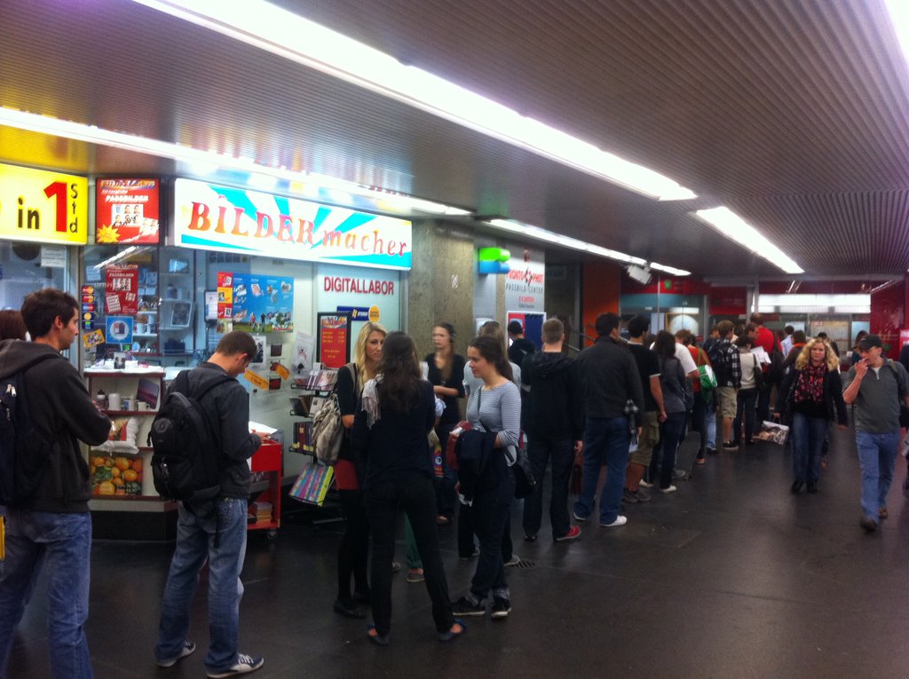 Studenten stehen Schlange
