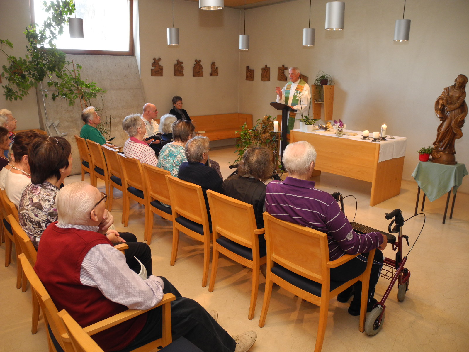 Pfarrer Siegl feiert eine Messe im Haus Nofels