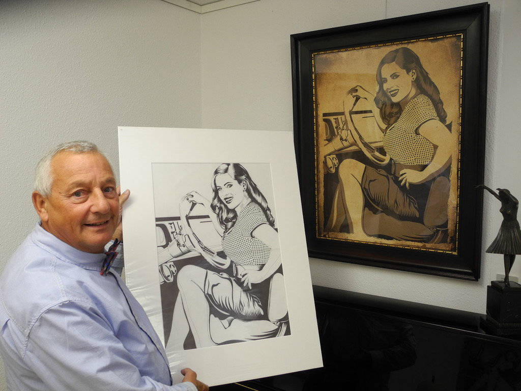 Werner Gamper mit den Entwurf zum Bild an der Wand