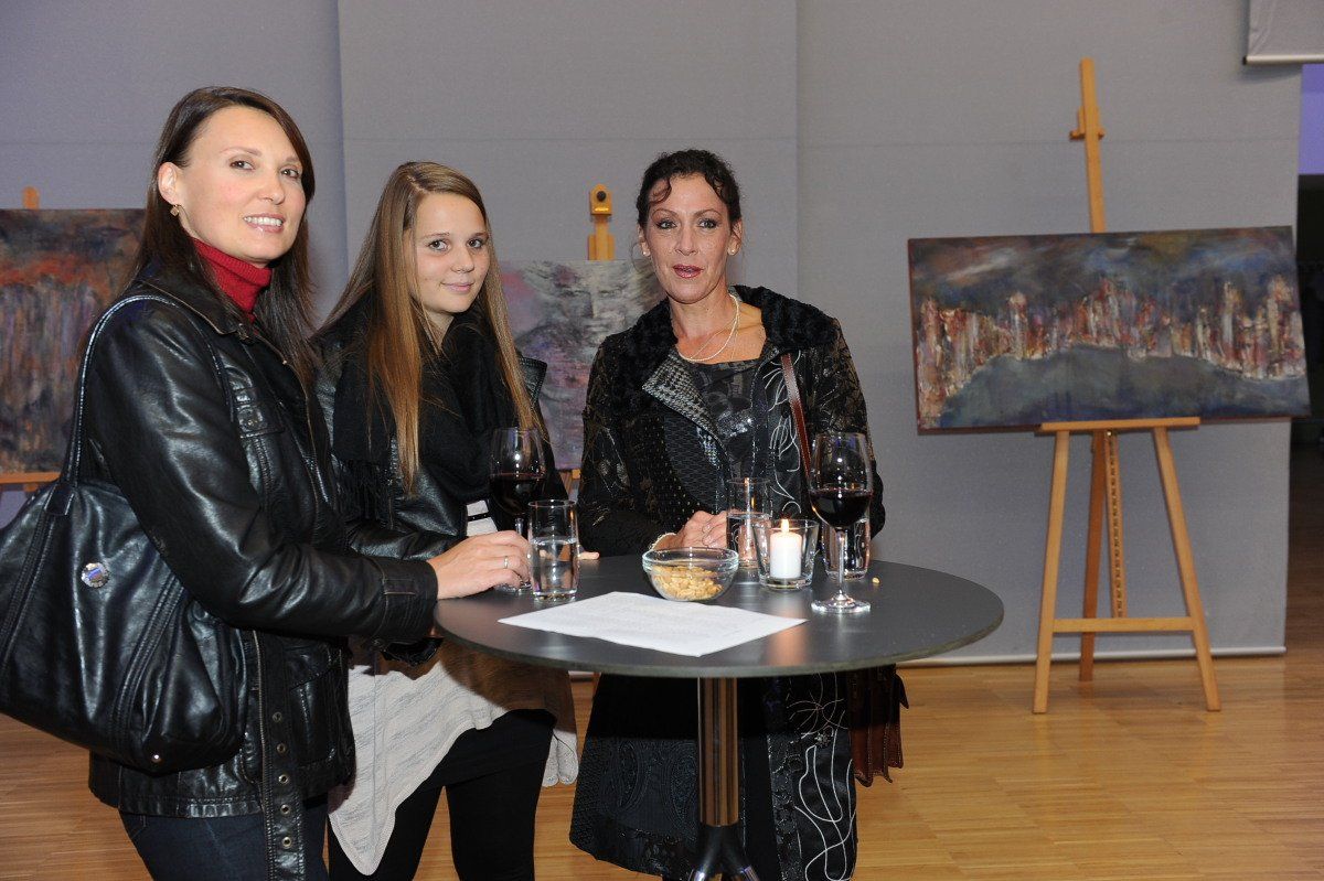 Unter den Vernissagegästen: Daniela und Michelle Hofer sowie Gabriele Wolff.