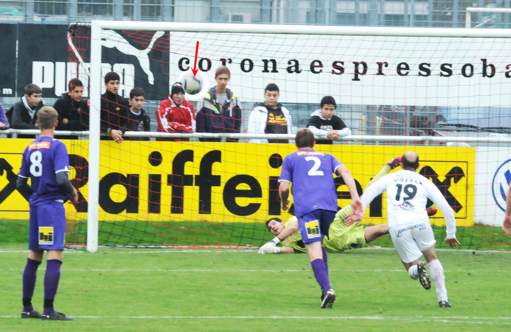 Der Ball (PFEIL) geht zurück ins Feld