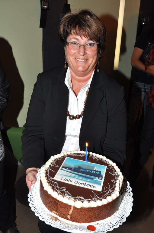 Eine Torte mit dem Bild der DorfMitte gab´s zum einjährigen Jubiläum.