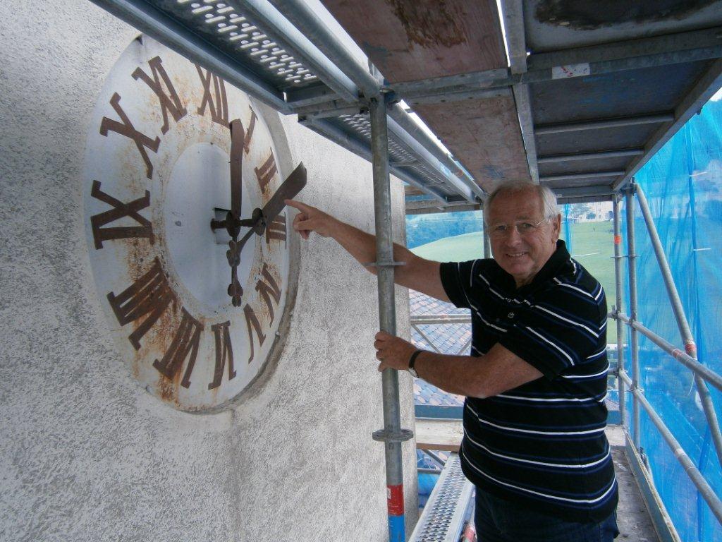 Wolfgang Alge bei der alten Turmuhr, welche nun abgedeckt wurde