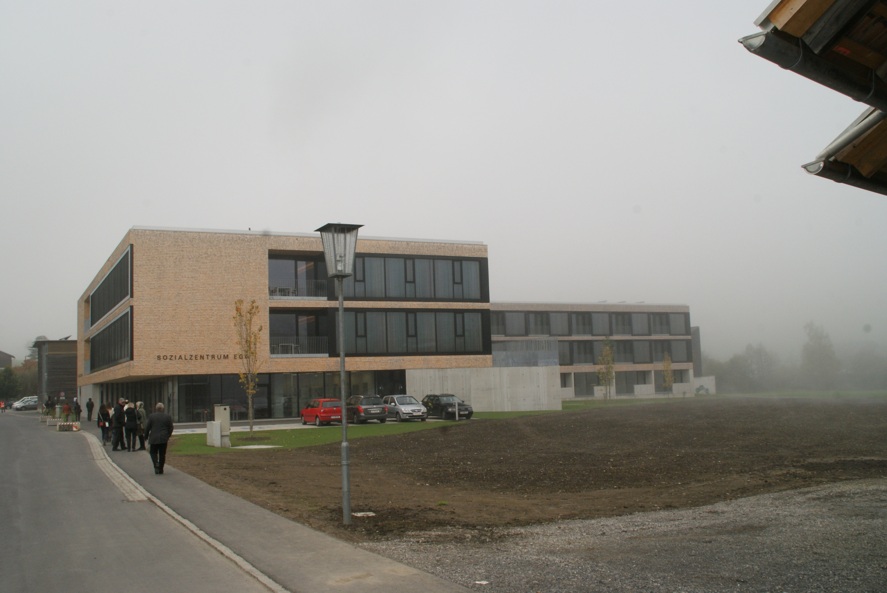 Am Morgen lag das neue Sozialzentrum unter einer dicken Nebeldecke