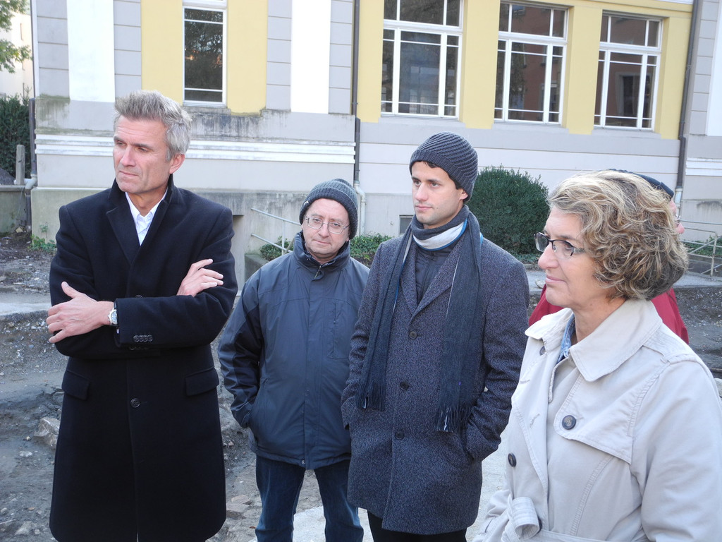 (l.) Stadtbaumeister Mödlagl, Stadtarchiva Volaucnik, ein Mitarbeiter des Archäologenteam und Vizebürgermeisterin Burtscher