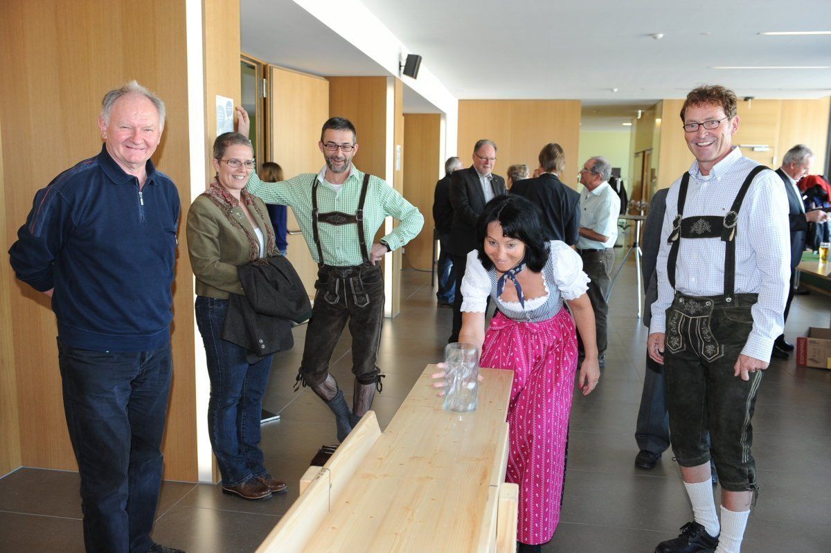 Mit voller Konzentration waren die Teilnehmer beim Bierkrugschieben bei der Sache.