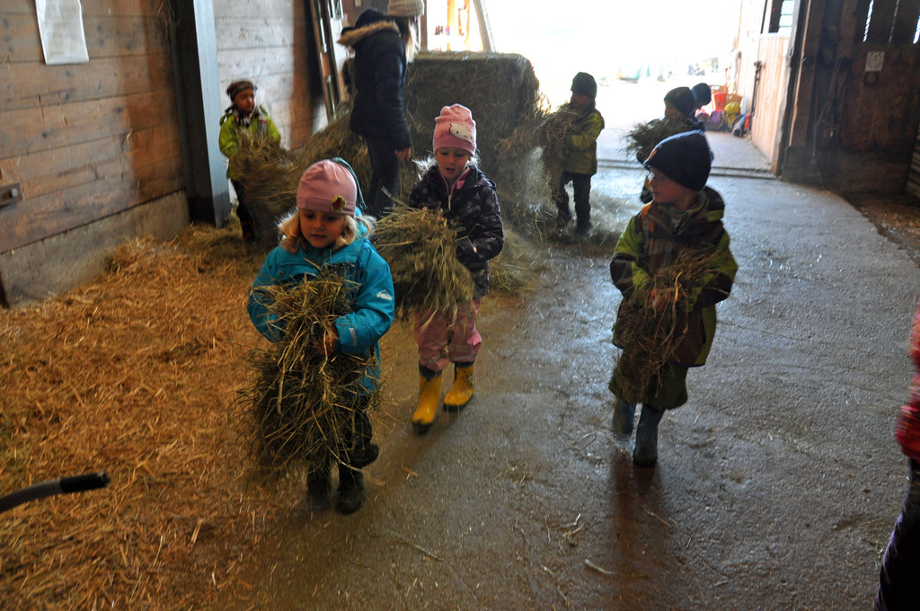 Anschließend werden die Pferde mit Heu versorgt.