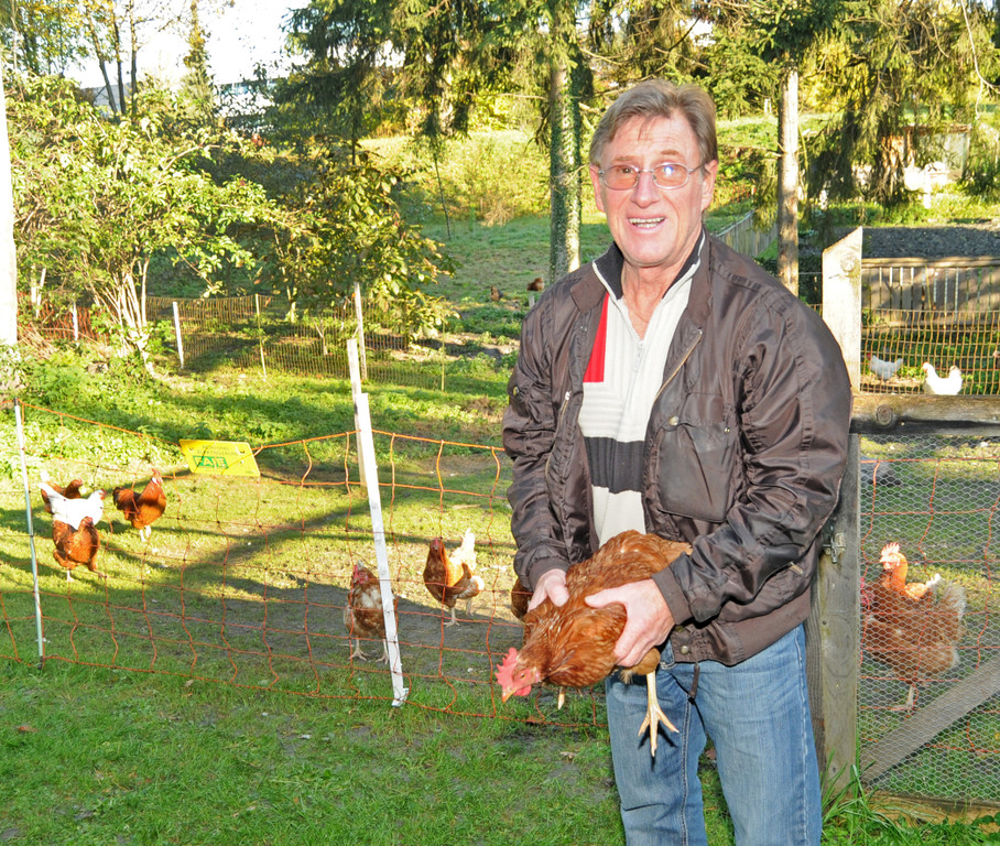 Hans schaut auf sein Federvieh