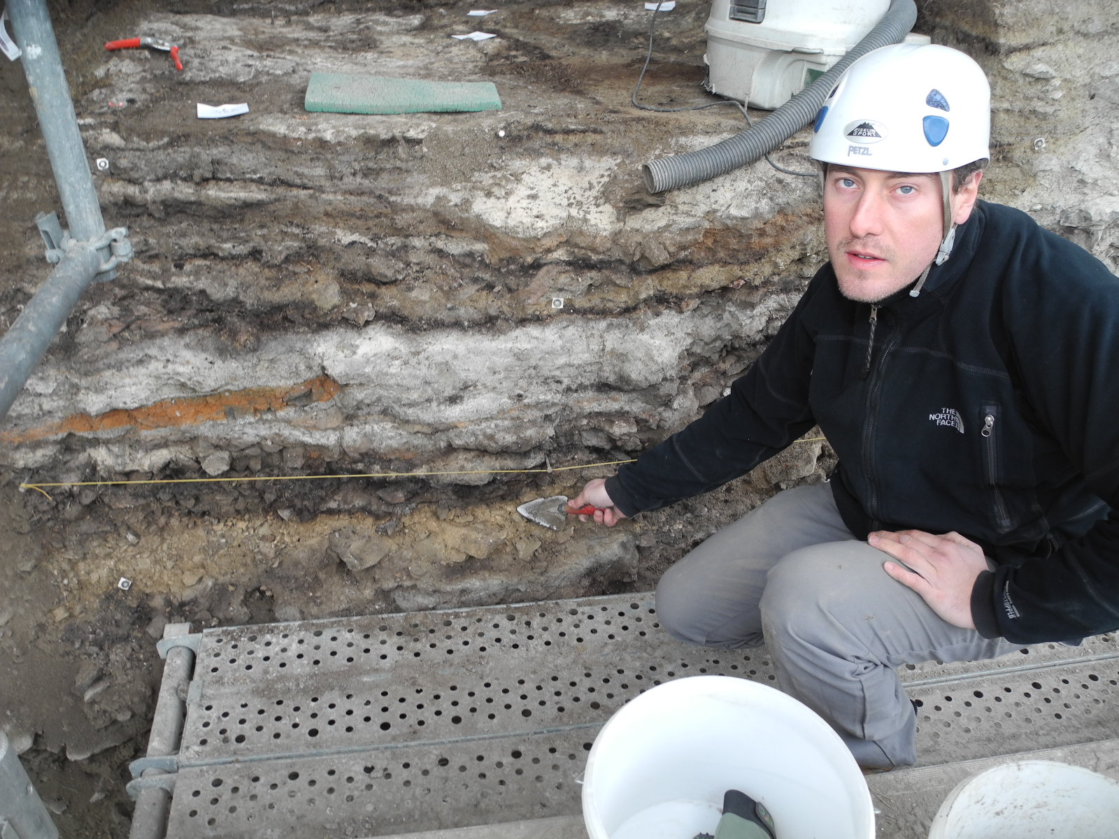 Fabio Wegmüller zeigt die einzelnen Schichten der verschiedenen Besiedelungszeiträume