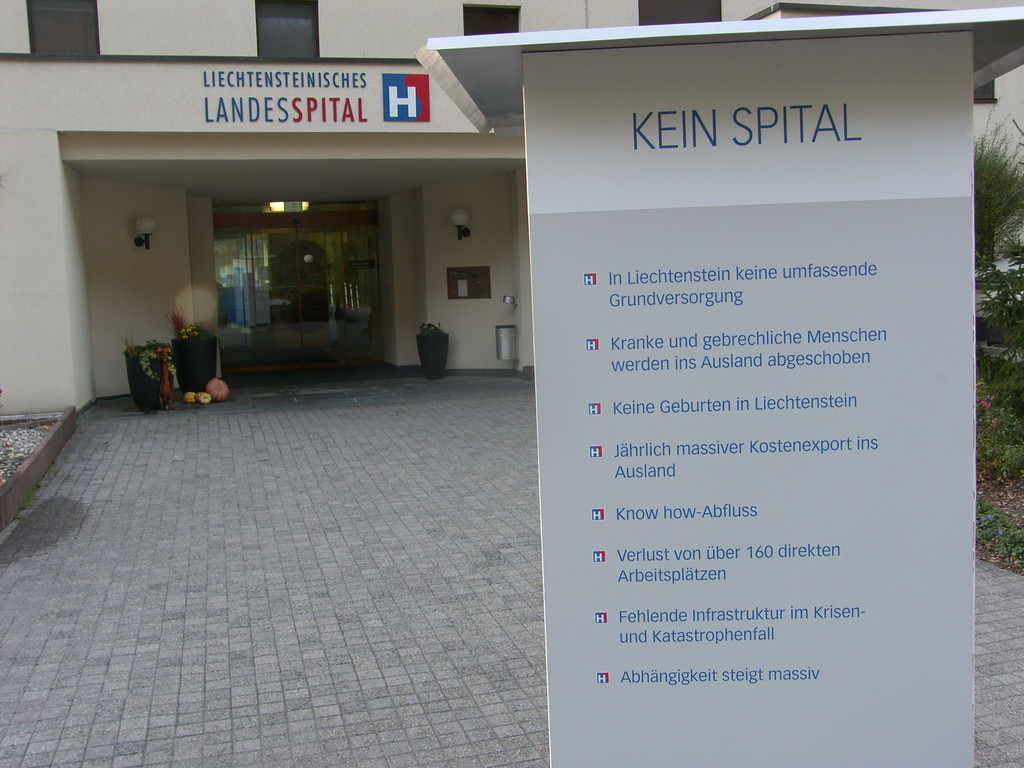 Mit Plakaten wurde vor dem Spital für den Neubau geworben