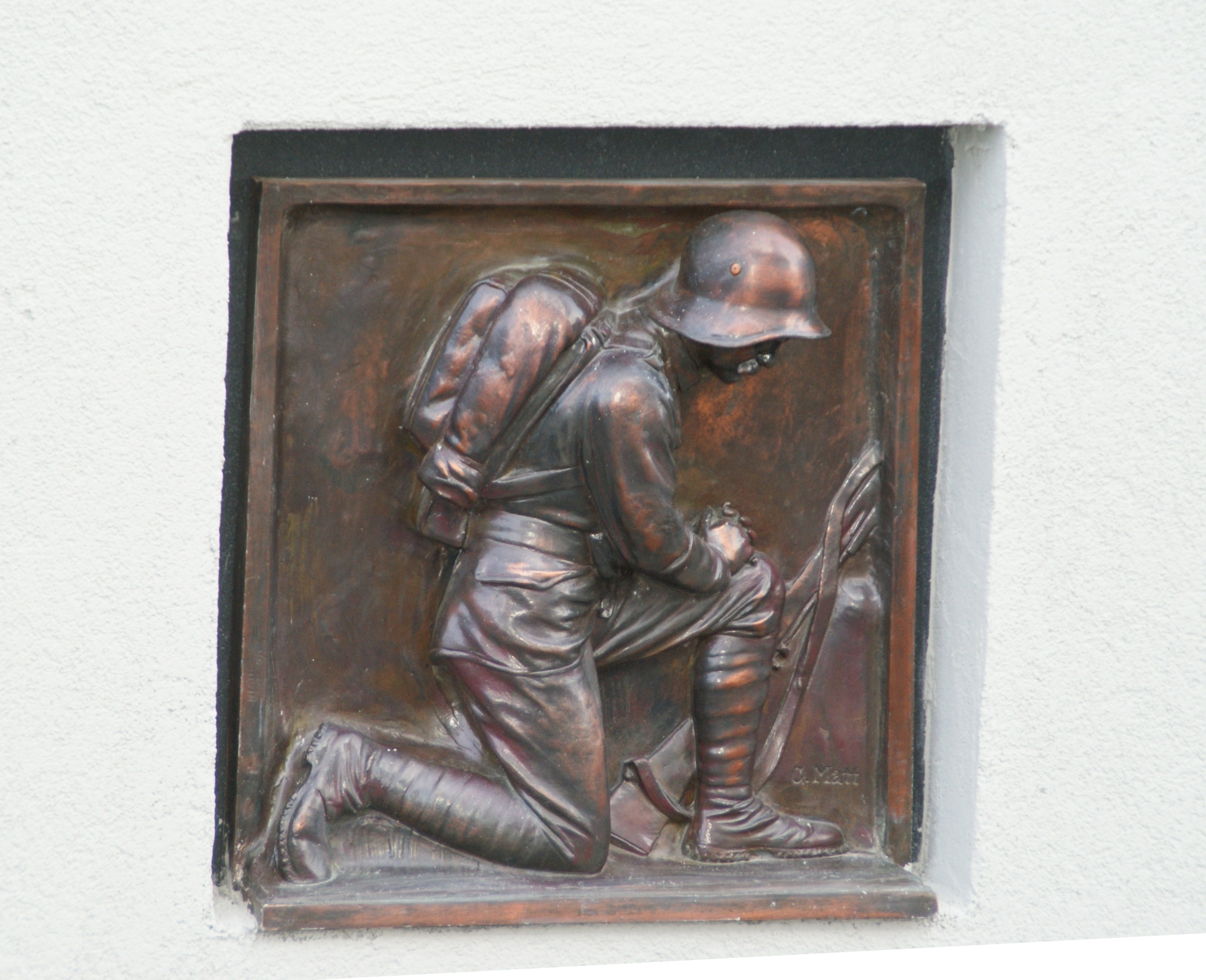 Das Reliefs des Kriegers wurde in die Urnenwand integriert.