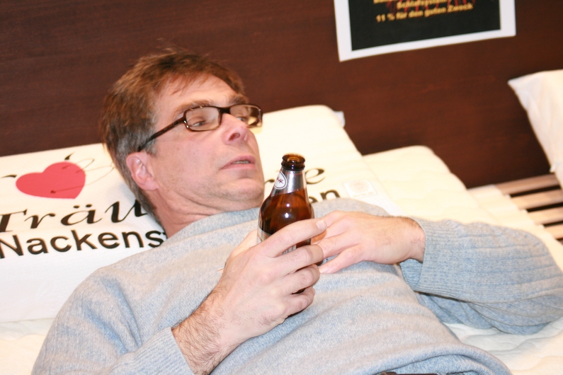 Dieser Herr machte es sich mit seinem Bier gleich auf dem "Balldini-Bett" gemütlich