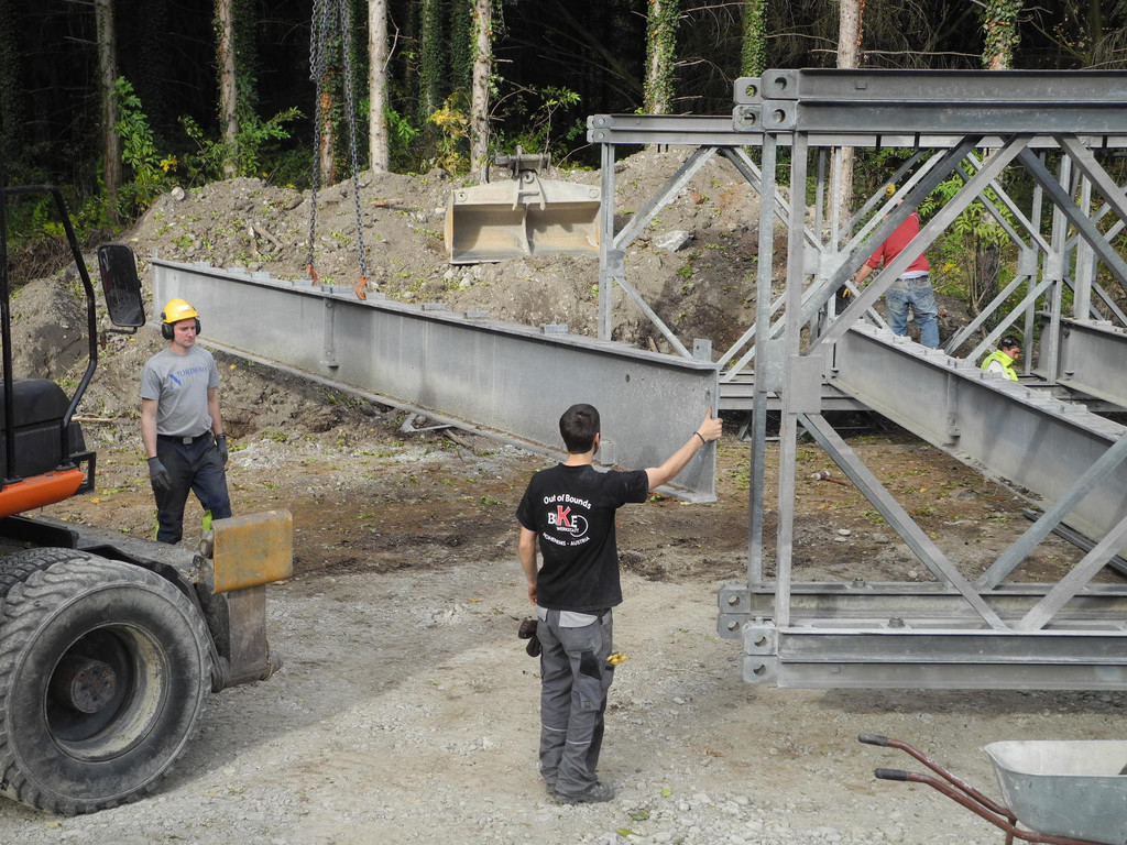 Die Behelfsbrücke wird zusammengestelt