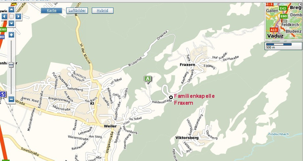 Anfahrtsplan zur Familienkapelle Fraxern