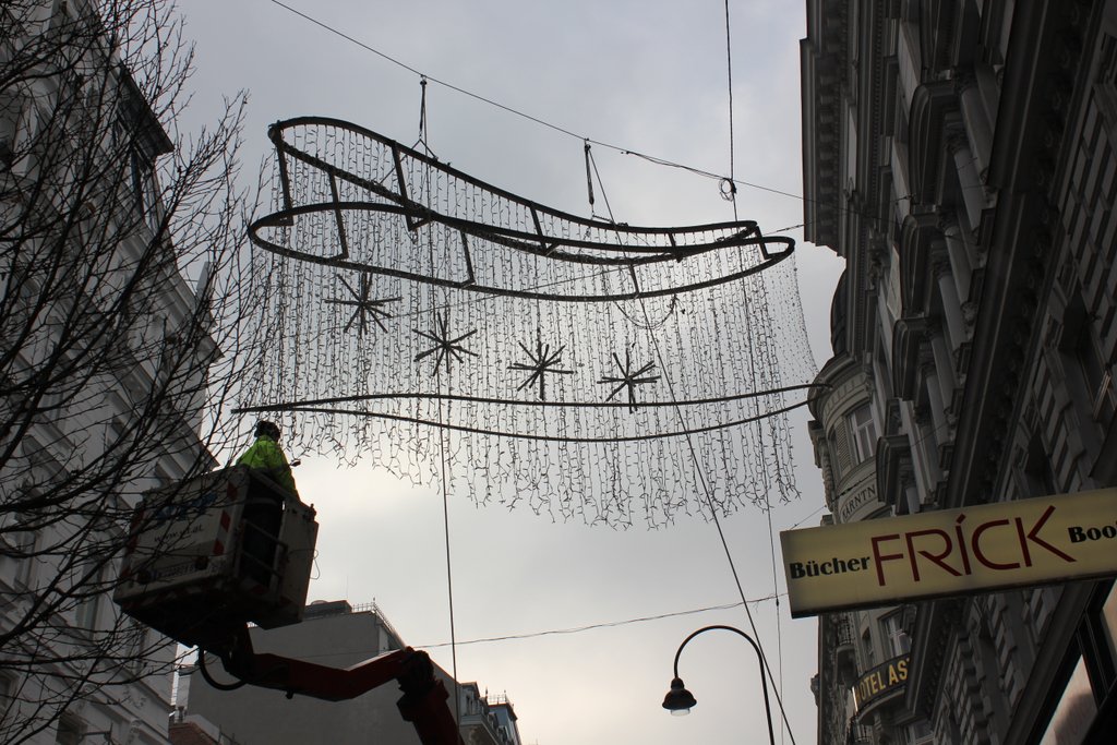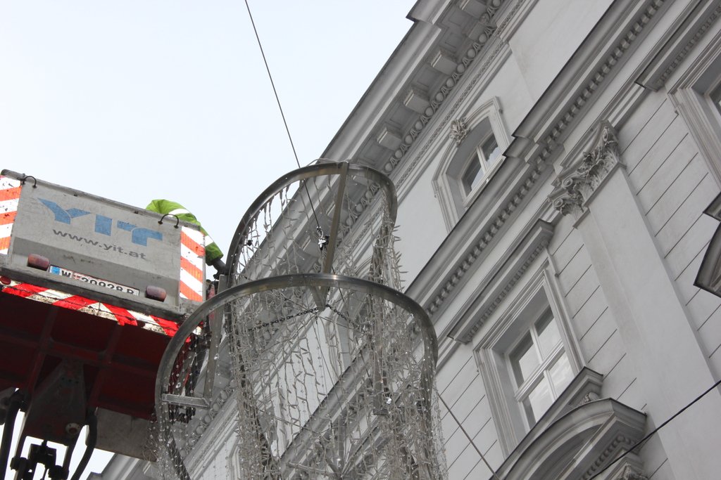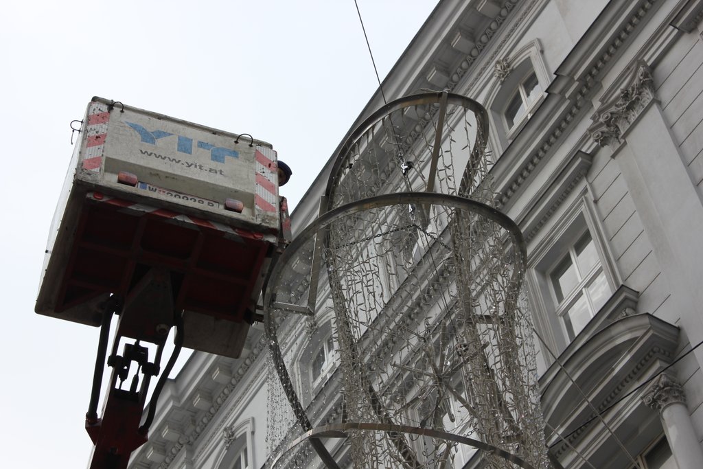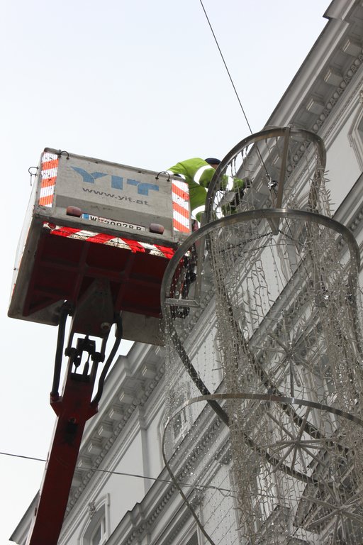 Weihnachtsbeleuchtung 2011 wird auf der Kärntner Straße montiert