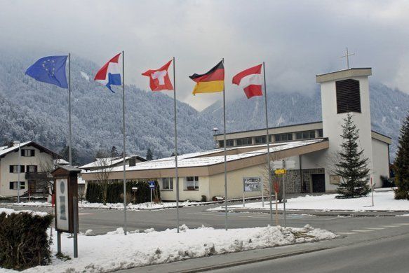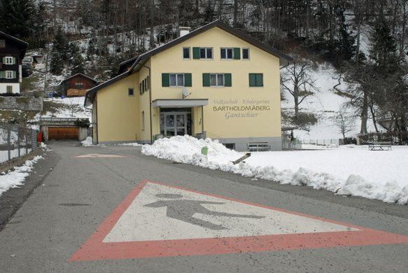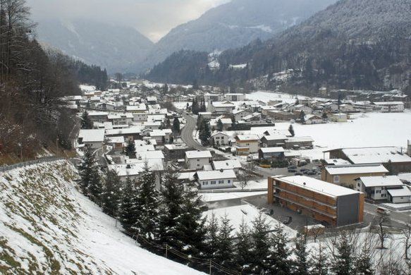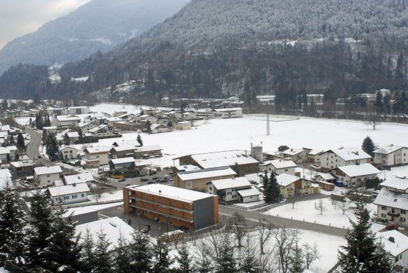 Holz, Holzbauweise, Architektur, Jugendhaus, Familienhaus, Gästehaus, Gaestehaus, JUFA, Jugend- und Familiengästehaus, Jugend- und Familiengaestehaus, Bartholomäberg, Bartholomaeberg, Gantschier, Montafon, Vorarlberg, Winter, Schnee, Straßendorf, Häuser, Haeuser, Gebäude, Gebaeude, Bank, Bänke, Baenke, Sitzbank, Sitzbänke, Sitzbaenke, Straße, Fahrbahn, Wald, Landschaft, Winterlandschaft, Natur, Fahnen, Wind, wehen, Bibliothek, Bücherei, Buecherei, Buchstaben, Kleinbuchstaben, Bastelarbeiten, Selbstgebasteltes, Schaufenster, Literatur, Berg, Gebirge