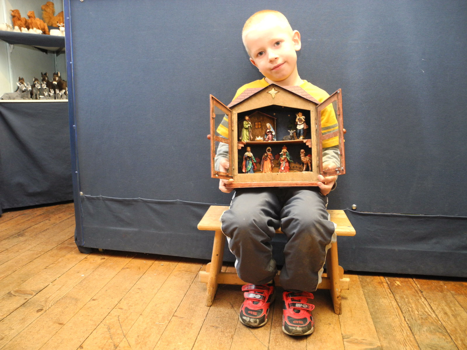 Enkel Pascal Gohm zeigt die Soieluhrkrippe