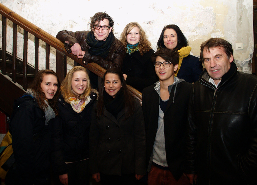 Direktor Thomas Rothmund mit Maria Lässer, Simon Egle und dem Siegerteam des BORG Götzis