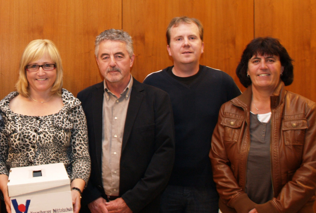Margot Berchtold von der Mittelschule mit Carmen Kadoff ( Rueff Textil), Michael Reiner und Walter Konzett (Fa. Freis/ Sulz)