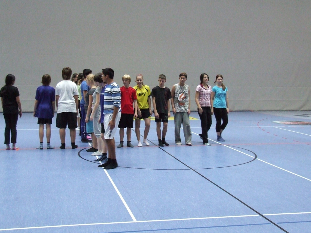 Mittelschule Vorkloster erproben die tänzerische "Mühle"