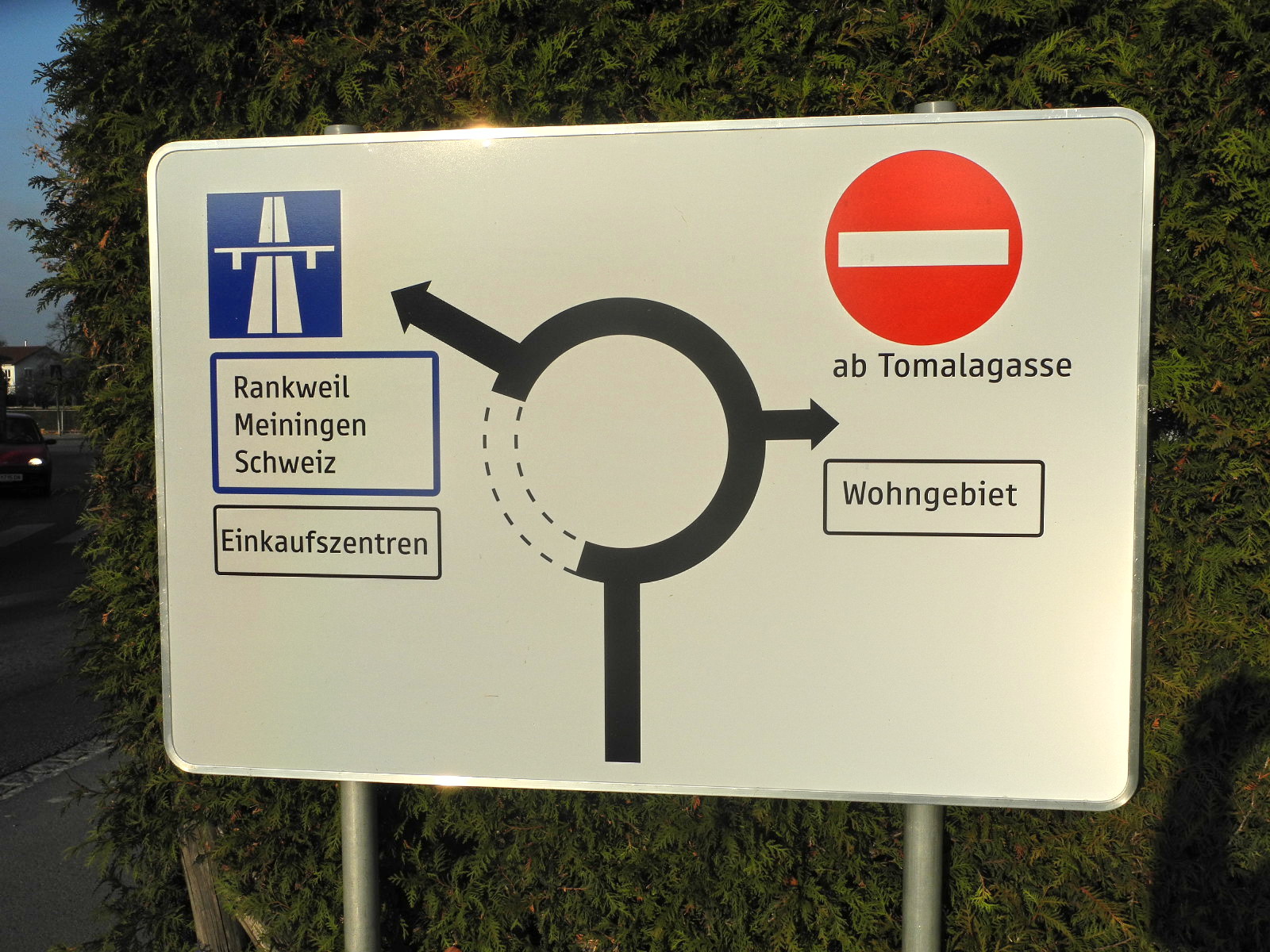 Die Hinweistafel für die Einbahnregelung der Tomalagasse