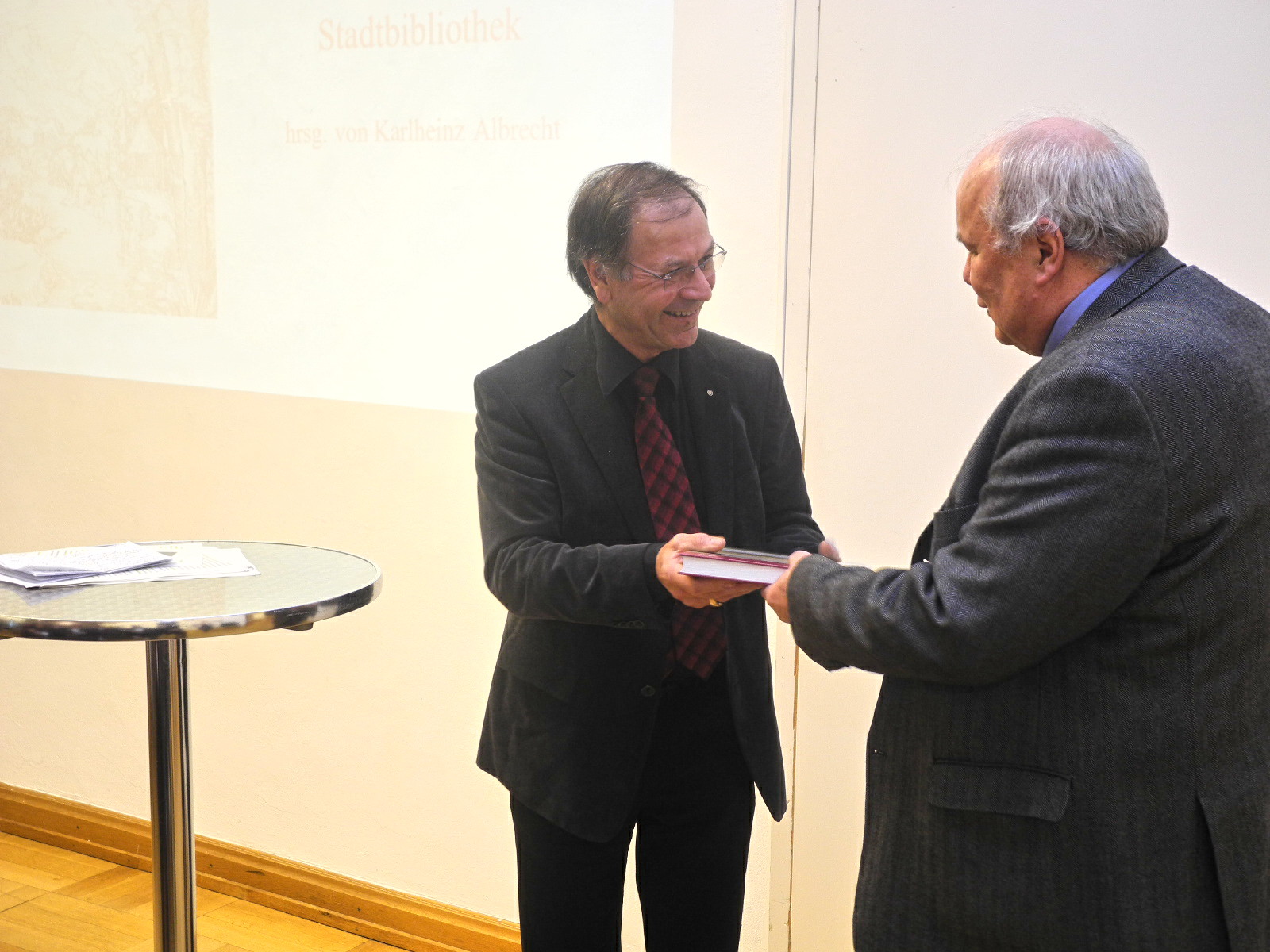 Albert Ruetz übergibt Karlheinz Albrechte das erste Exemplar