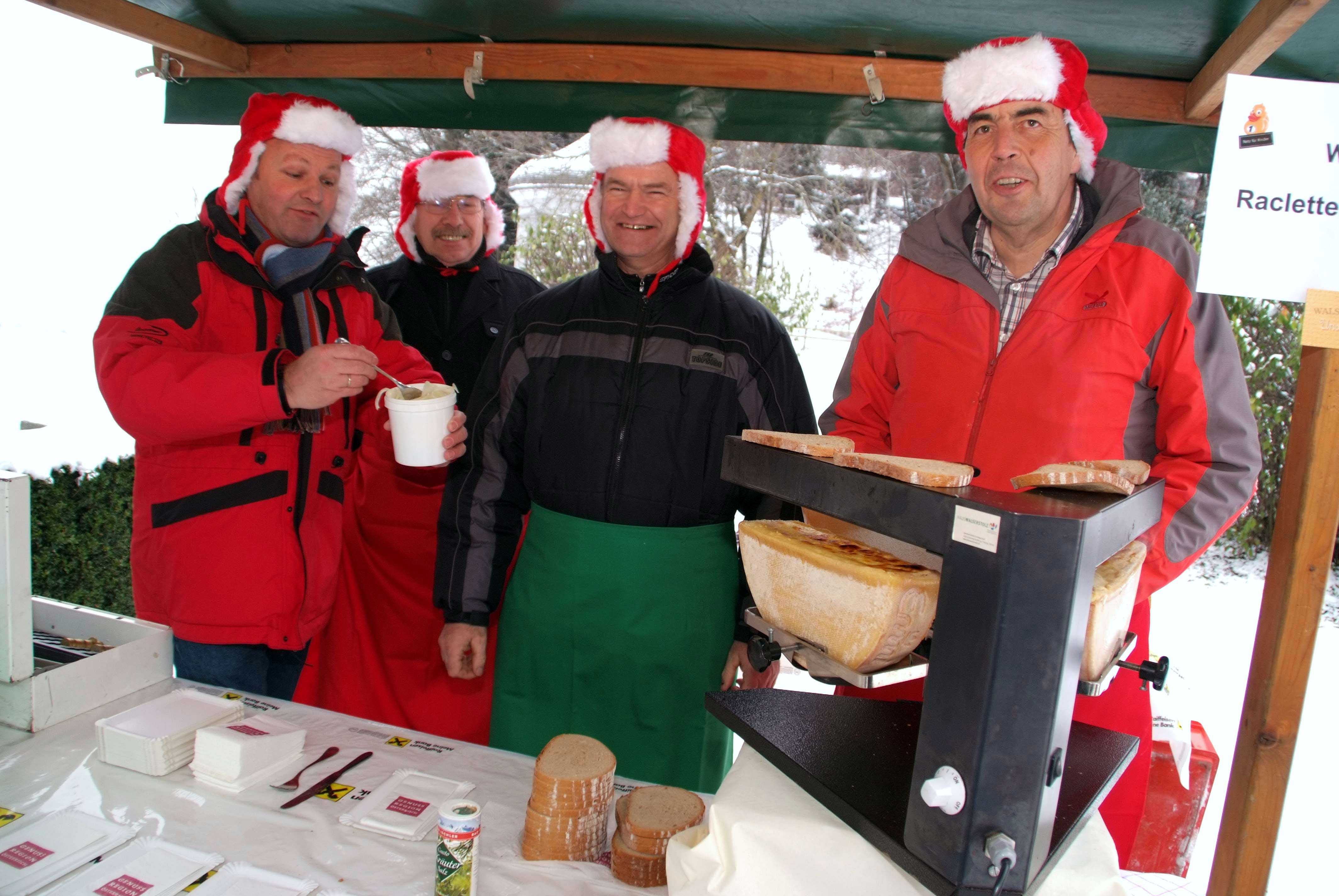 Bürgermeisterliche Raclette-Verpflegung durch Stefan Bachmann, Sebastian Bickel, Hermann Manahl, Franz Ferinand Türtscher