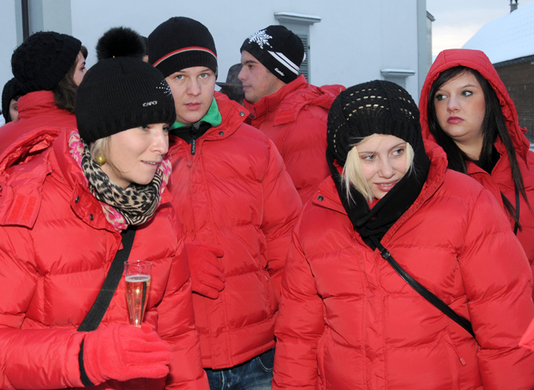Das Gefolge besonders warm verpackt