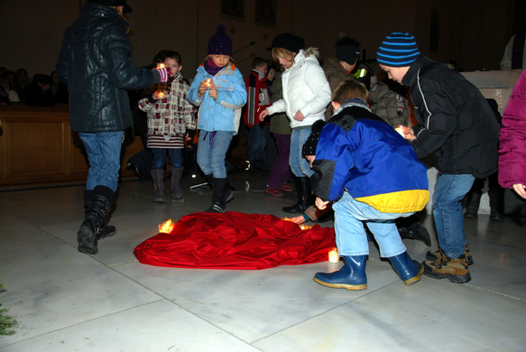 Bei der Rorate in der Pfarrkirche St Martin legten die Schüler ein Herz aus Kerzen.