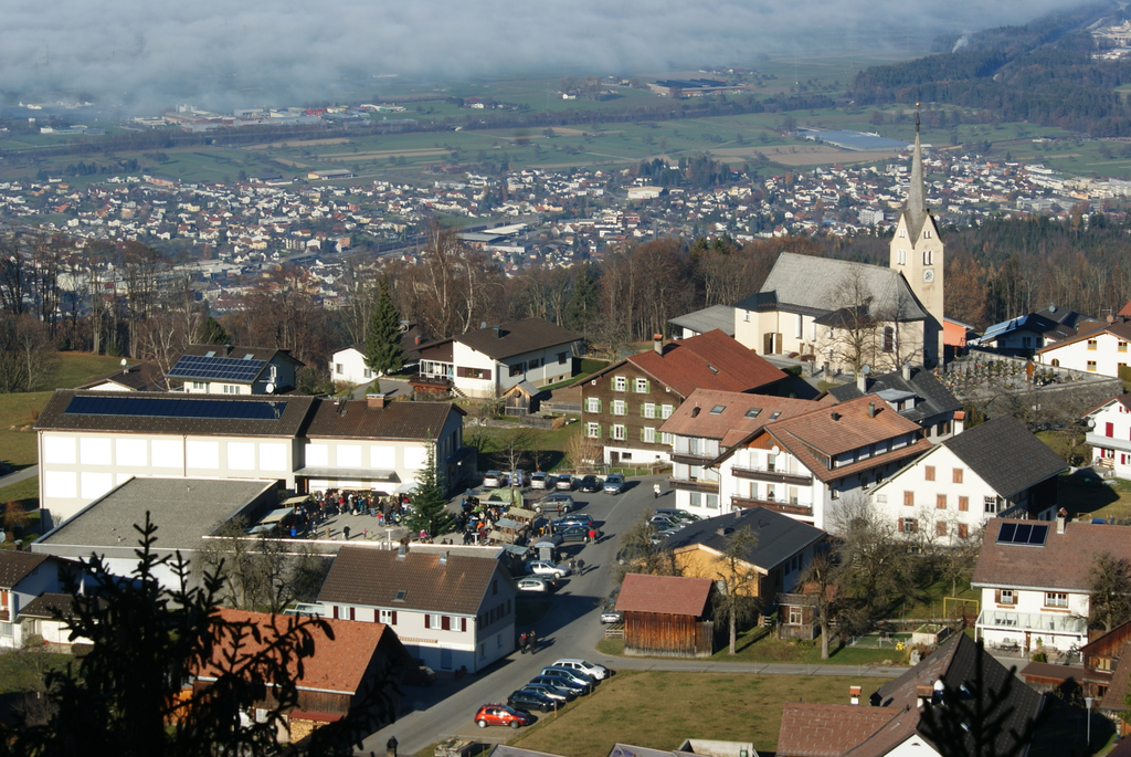 Blick auf den Dorfplatz von Übersaxen.
