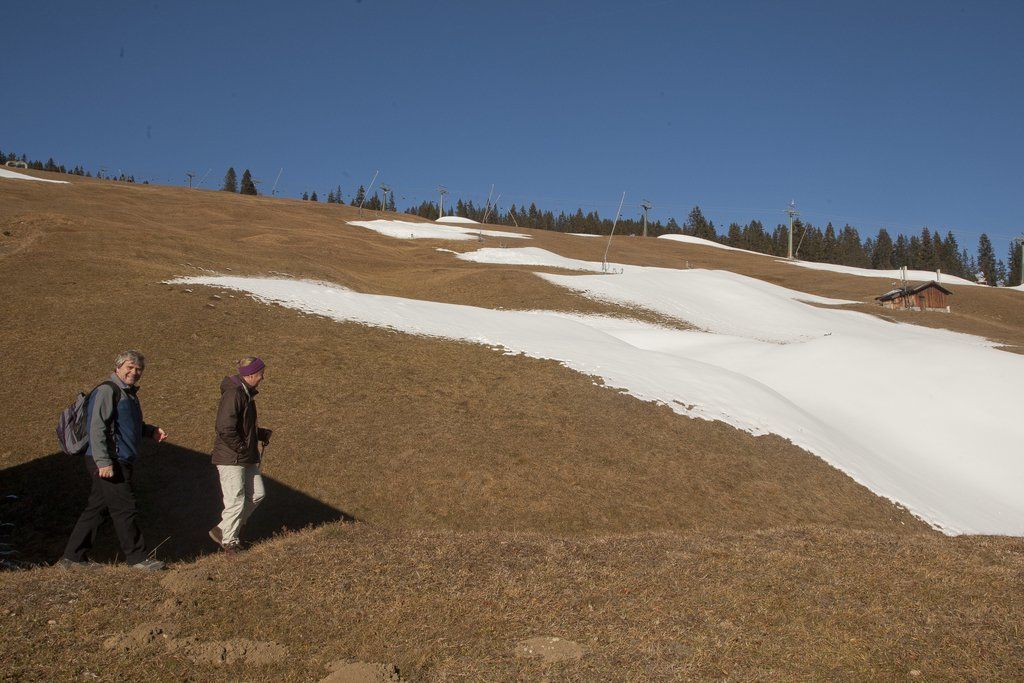 Kein Schnee in Sicht: Beschneite Pisten in Lech