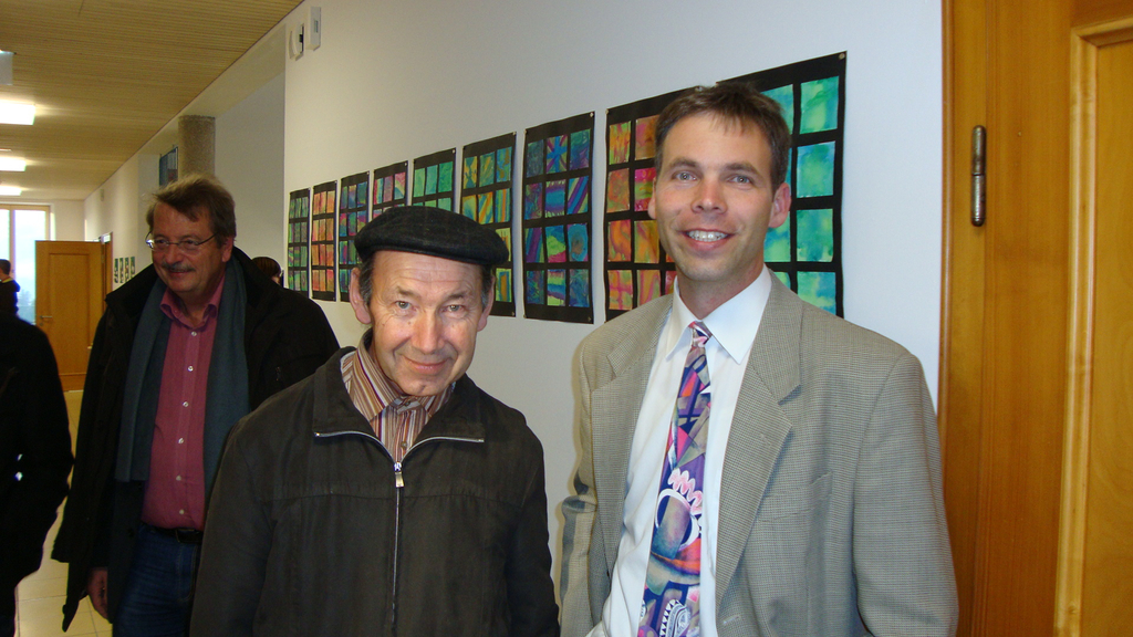 Xaver Fink im Gespräch mit dem Lehrer Jürgen Wachter.