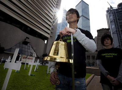 Mit der Aktion kritisiert Greenpeace das Scheitern des Klimagipfels in Kopenhagen.