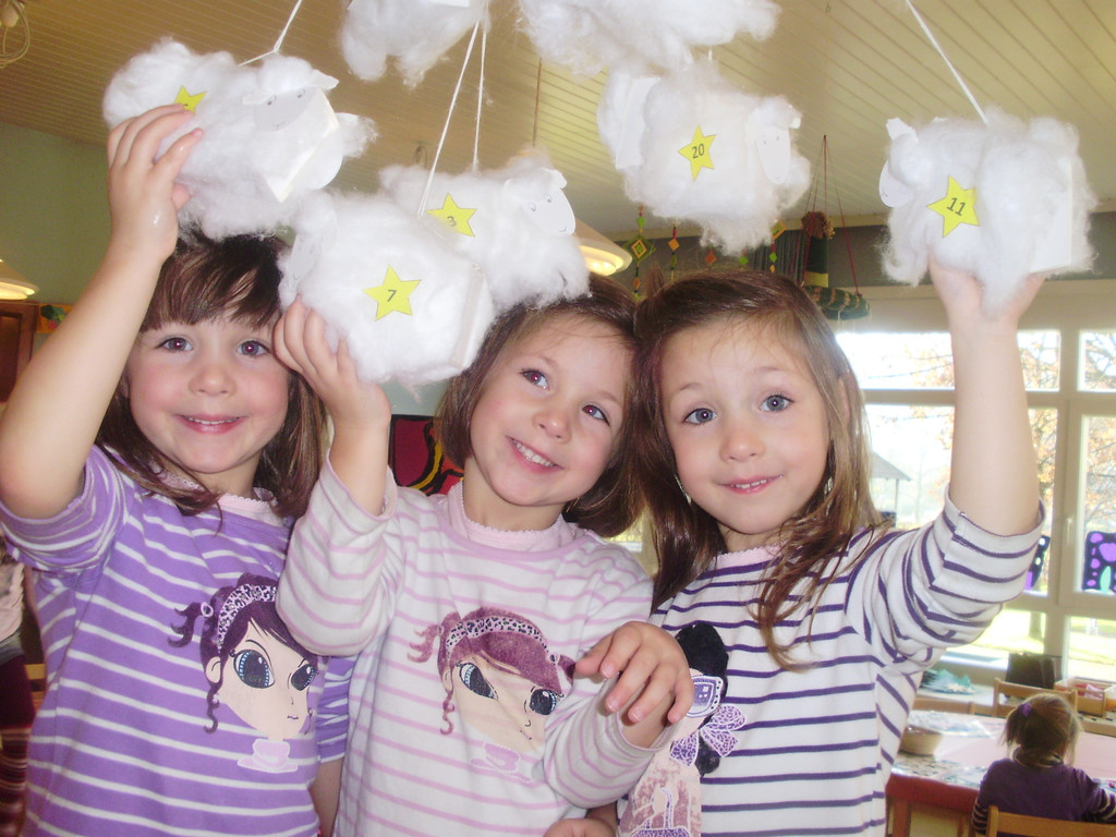 Amy, Zoe und Kim freuen sich über den originellen Adventskalender.