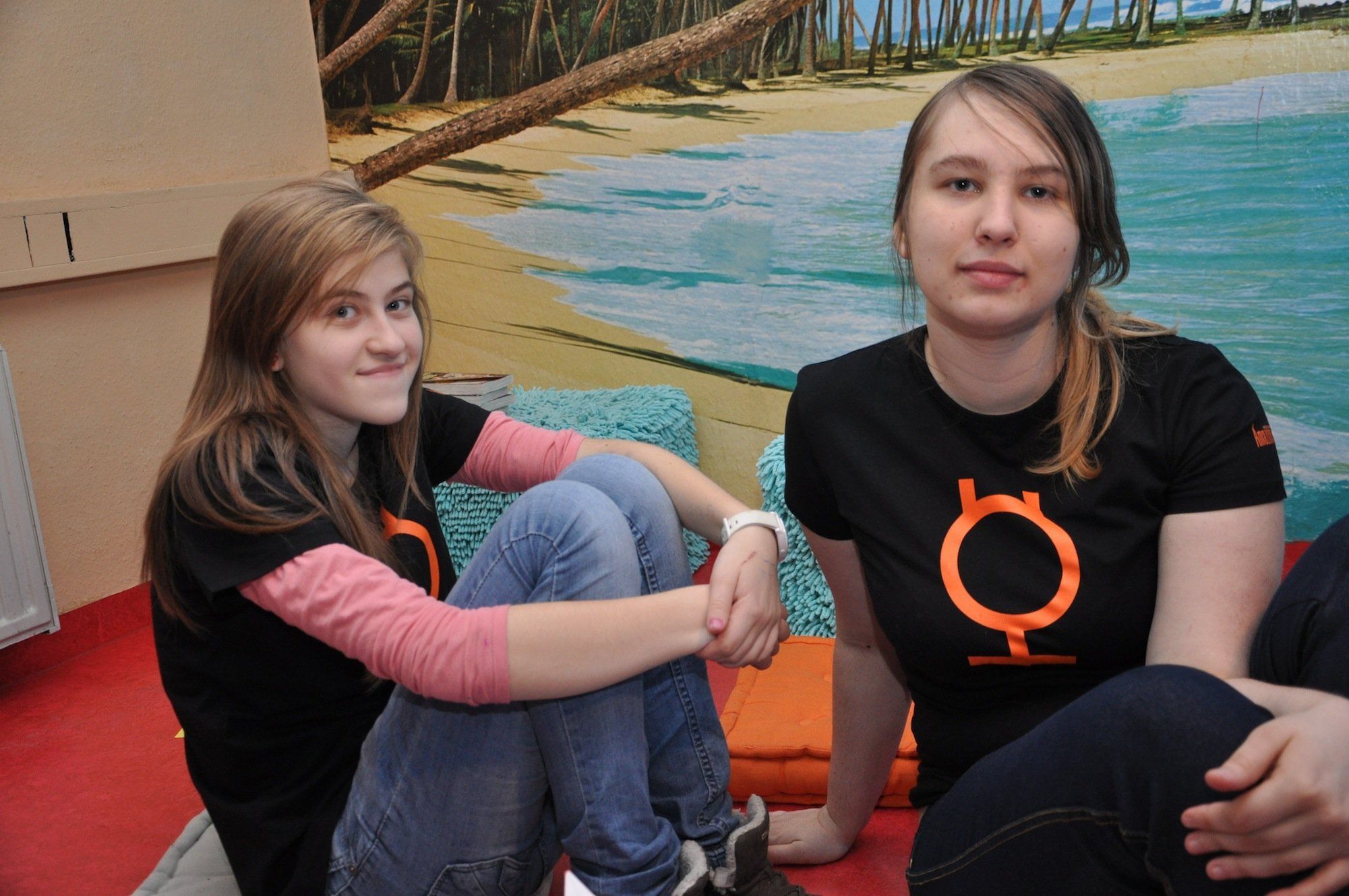 Fatma (l.) und Anna falten Origami
