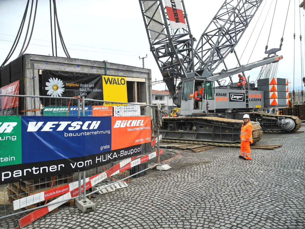 Der 500 Tonmnen Kran ist für die spektakuläre Aktion "parat"