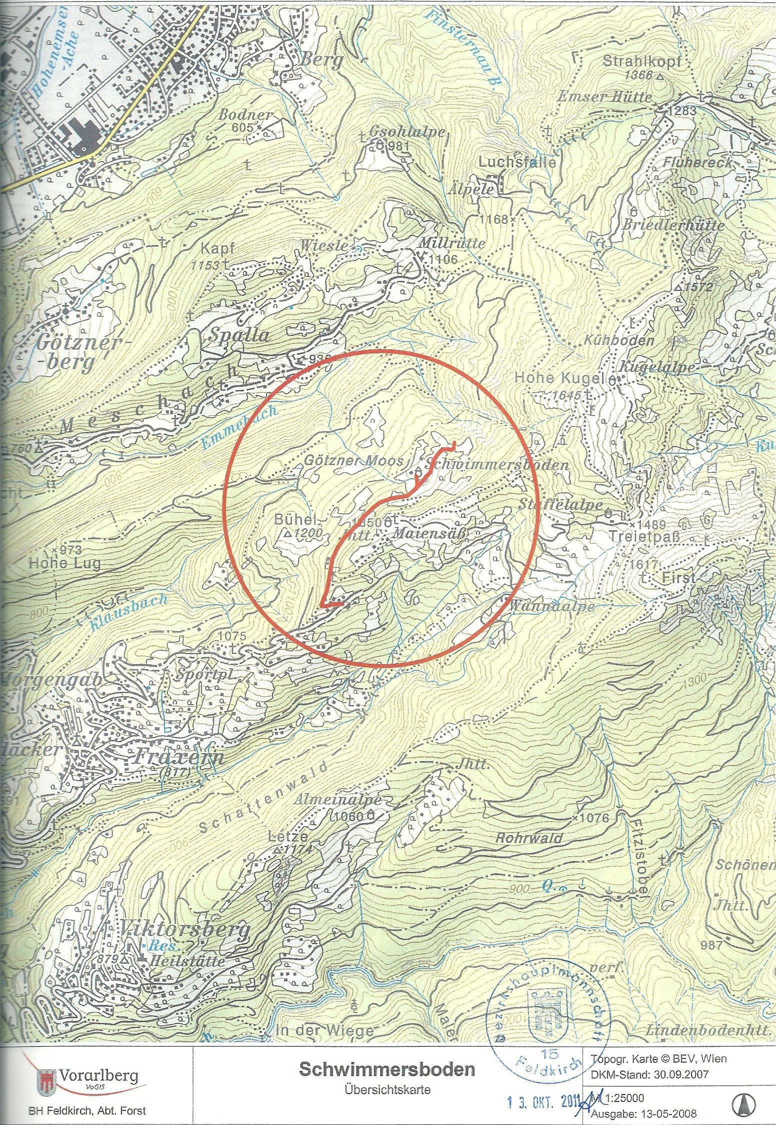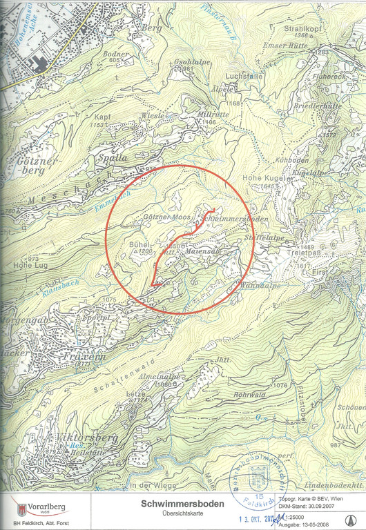 geplanter Forstweg Gemeindegebiet Fraxern: Gebiet "Jola-Schwimmersboden"