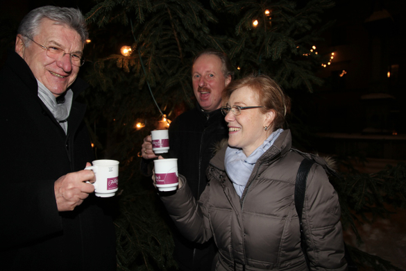 Sie stoßen auf das Rheticus Denkmal an: Dompfarrer Rudl Bischof mit