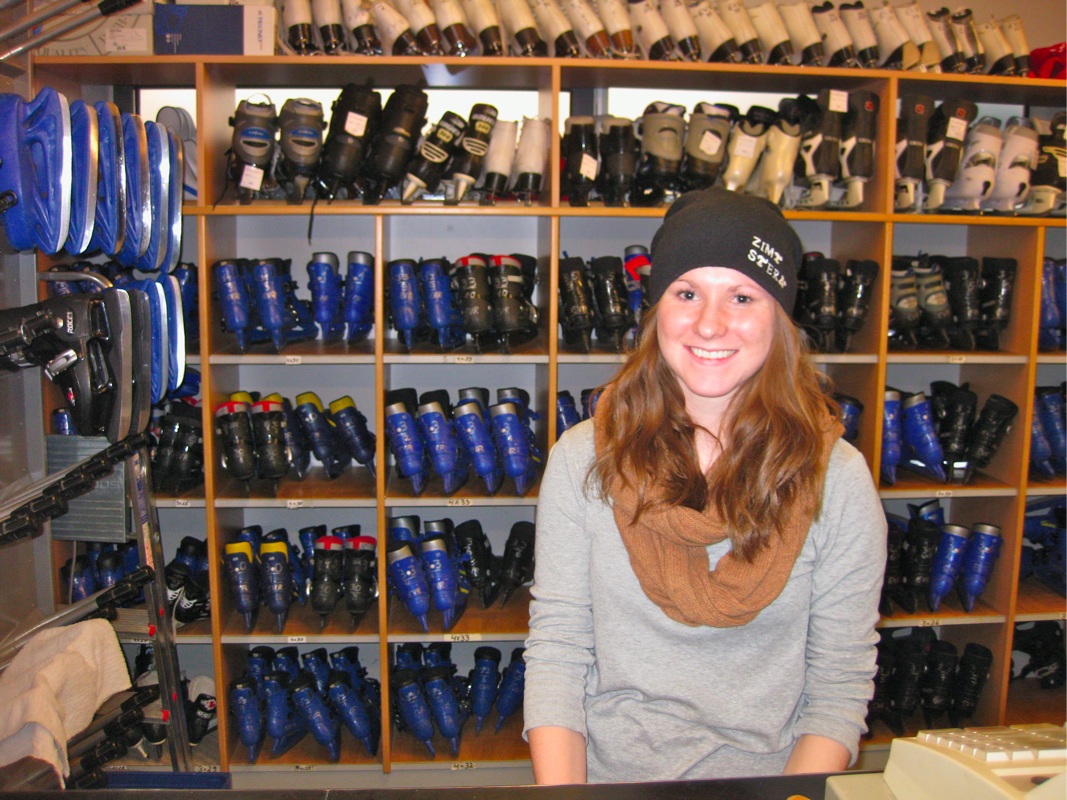 Anna half bei der Ausgabe des Schlittschuhverleihs