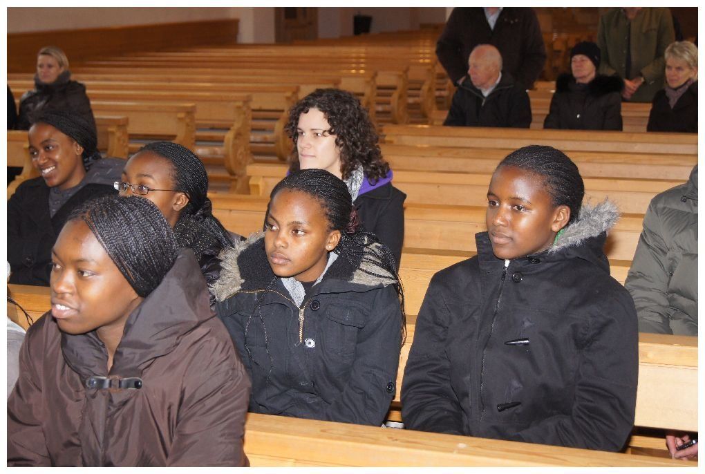 Die Schülerinnen des Schulchores aus Nairobi, die anlässlich der Romero-Preisverleihung in Vorarlberg weilten, haben heute zum Abschluss ihres Aufenthaltes die Heimat von Sr. Maria Pacis Vögel besucht. In der Kirche wurden sie von den Sternsingern mit Liedern begrüßt und von Pfarrer Senn willkommen geheißen.
