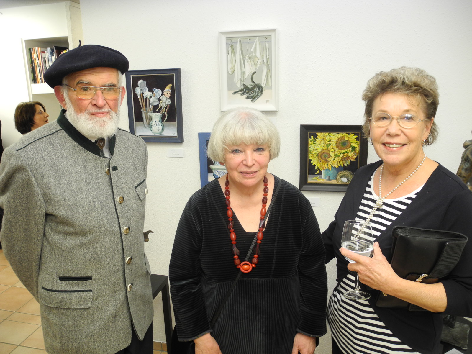 Der Bludenzer Bildhauer Werner Deutschmann mit seiner Gattin und der Künstlerin Gundi Groh in der Vernissage