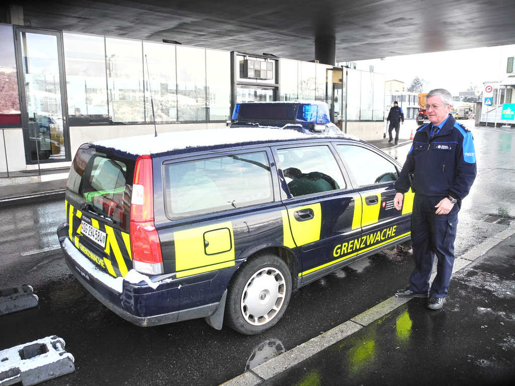 Postenchef Hilty bei einem Fahrzeug für mobile Einsätze der Grenzwache.