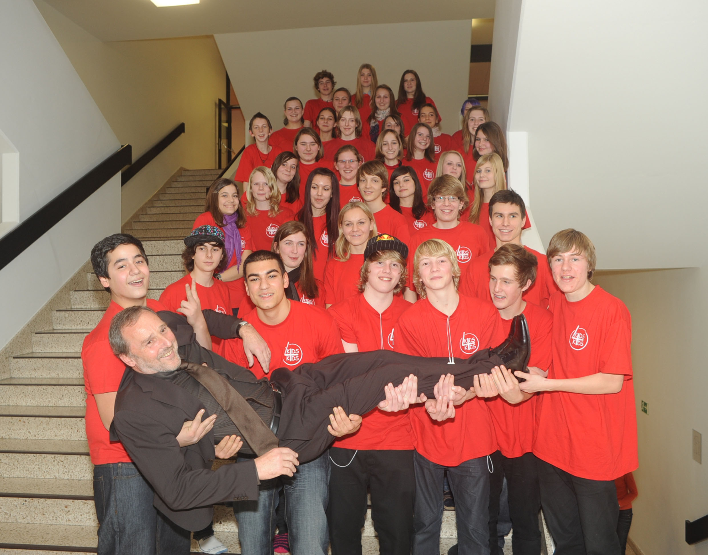 Am BG Blumenstraße tragen die Schüler ihren Direktor auf Händen.